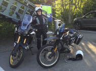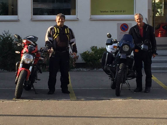 Ohne Bild - die beiden Tourguides Arthur und Alain empfingen - noch nicht im im Regen! - 2 Teilnehmende, Urs auf der grossen Honda Crosstourer und Myriam auf der Triumph Tiger, die sich diese Fahrt nicht entgehen lassen wollte.