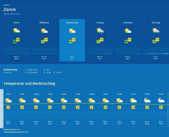 Züri-Wätter im Detail für Donnerstag, 23.Juli 2020 |