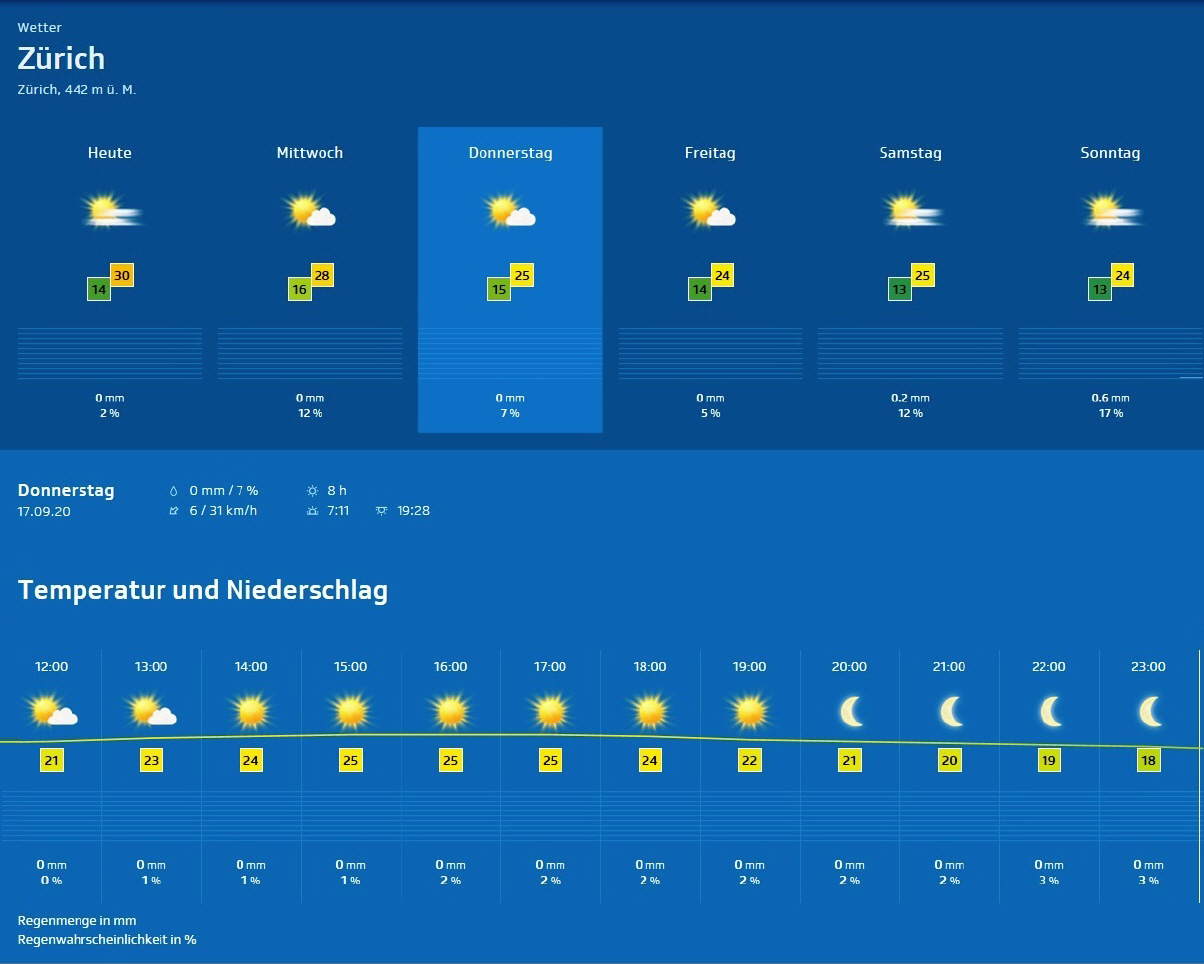 Züri-Wätter im Detail für Donnerstag, 17. Sept. 20 |