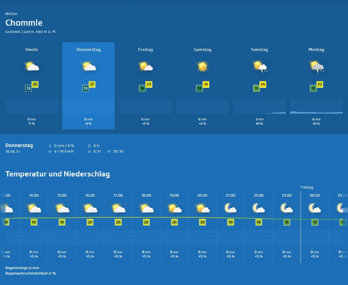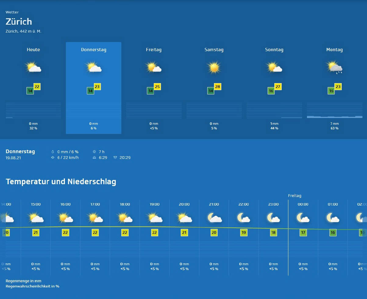 Züri-Wätter für Donnerstag, 19.Aug. 2021 |