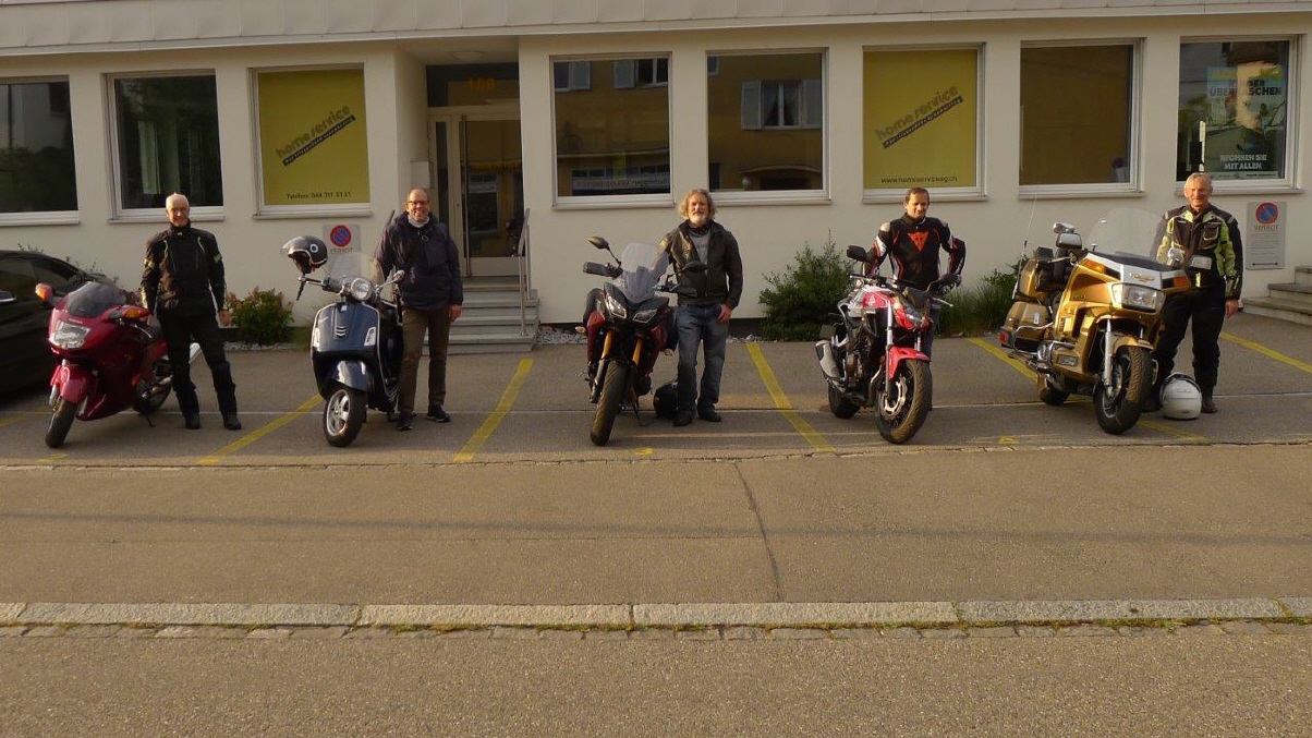 Roland und Alain erwarten die TeilnehmerInnen bei der Autobahn-Ausfahrt Thalwil auf dem Parkplatz zum Park im Grüene bei der Migros Rüschlikon. Sie werden um 18.00 Uhr losfahren und bestimmt eine interessante Strecke finden im Aargau. |