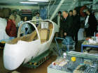Noldi führt uns durch die Geschichte der Einspur-Autos: Es hatte bereits verschiedene Versuche in den Zwanziger- und Dreissiger-Jahre gegeben: Beispielsweise das «Mauser»-Einspurauto wurde in etwa 2000 Exemplaren gebaut! Die Idee kam ihm, als er, im Hauptberuf Swissair-Jumbo-Captain, als Geschäftsleiter eine Segelflugzeugfabrik führte, was ihn zu Fahrten über grosse Distanzen zwang. Er fand es wenig sinnvoll und oekonomisch, mit einem 2 Tonnen-Fahrzeug als Einzelperson eine Mappe als Gepäck zu reisen. Mit dem Motorrad war er zu stark abhängig vom Wetter, also träumte er von einem Kabinen-Motorrad. Mit einem BMW-Boxer-Modell machte er erste Fahrversuche, bevor er sich an den Prototypen in der Form des heutigen Ecomobils (vormals Oekomobil) machte. Als Ingenieur war er gewohnt, schwierige Probleme zu lösen und vom Flugzeugbau, wie unschwer zu erkennen, brachte er gewisse Erfahrungen im Fahrzeugbau mit. So sieht denn auch das Eco aus wie ein Segelflugzeug ohne Flügel... |