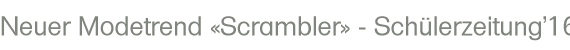Spätestens mit der Triumph Bonneville in Scrambler-Ausführung sind sie nun wieder en vogue: Alle möchten am Verkaufserfolg teilhaben und so hat bereits BMW, welche selbst im Gelände diese Konfiguration mehrmals eingesetzt hat, ein weiteres R nineT-Modell auf diesen Namen getauft, obwohl es, wie auch bei der erfolgreichen Ducati, auf das Merkmal der hoch verlegten Auspuffanlage verzichtet. Aber mit «Scrambler» ist man «in»! |