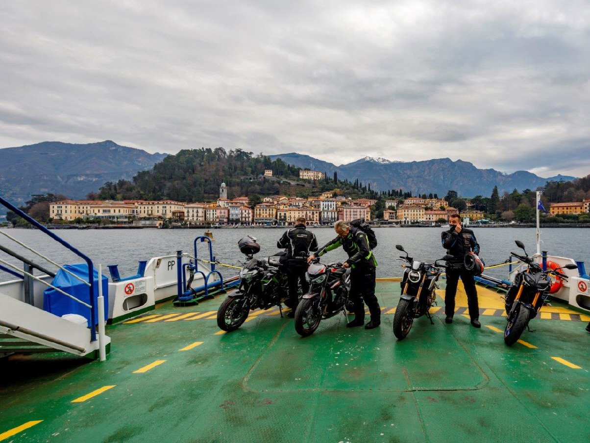 Dort trafen wir auf Micha Kutschke, den zweiten Redaktor und Roger, der vierte Fahrer im Bunde. Von der Grenze bei Lugano waren es nur etwa 25 Kilometer ins Hotel, von wo wir jeweils starteten. Kaum angekommen, traf auch der Fotograf Jörg ein und es ging ans auspacken bzw. abladen der Motorräder: Die neue Kawasaki Z900, die neue Triumph Street Tripple 765 und die bekannten Modelle Honda CB650 Neo Sports-Café sowie die Yamaha MT-09. |