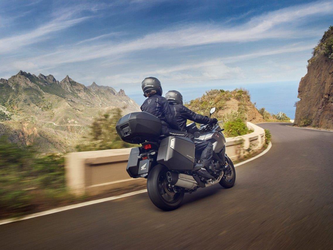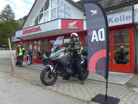 Mit dem Windschutz (die Scheibe stand in der höchsten Stellung) merkt man vom gefahrenen Tempo überhaupt nichts: Ruck-zack ist man jenseits der Legalität, vor allem nach einem Überholmanöver ausserorts. Vor starken Kurven muss der Tacho konsultiert werden, denn (auf jeden Fall ich) ich hatte kein Geschwindigkeitsempfinden, so leichtfüssig war diese Tourenmaschine unterwegs. Ich fühlte mich gut aufgehoben: Sitzbank, Lenker und Fussraster passten mit meiner Körpergrösse perfekt, obwohl ich eine Beinlänge habe, wie dies bei Personen mit einer Körpergrösse 1.90 normal ist. Ich war etwas faul und benützte oft nur die Vorderbremse, d.h. für das Fusspedal hätte ich meinen Fuss anheben müssen. Dies ist wohl dem engeren Winkel meiner etwas überlangen Beine zu verdanken. Da der Motor, vor allem bergab, exzellent bremst, war ich trotz forschem Tempo mit wenig Bremsmanövern konfrontiert. Auch dies ist einer der Vorzüge des raffinierten DCT-Getriebes, welches den Bremsbedarf durch den Motor inklusive mit Zurückschaltmanövern mit Ausgleichsgas zwischen den Gängen sanftweich überträgt. Das war das beste DCT, das ich je gefahren bin.