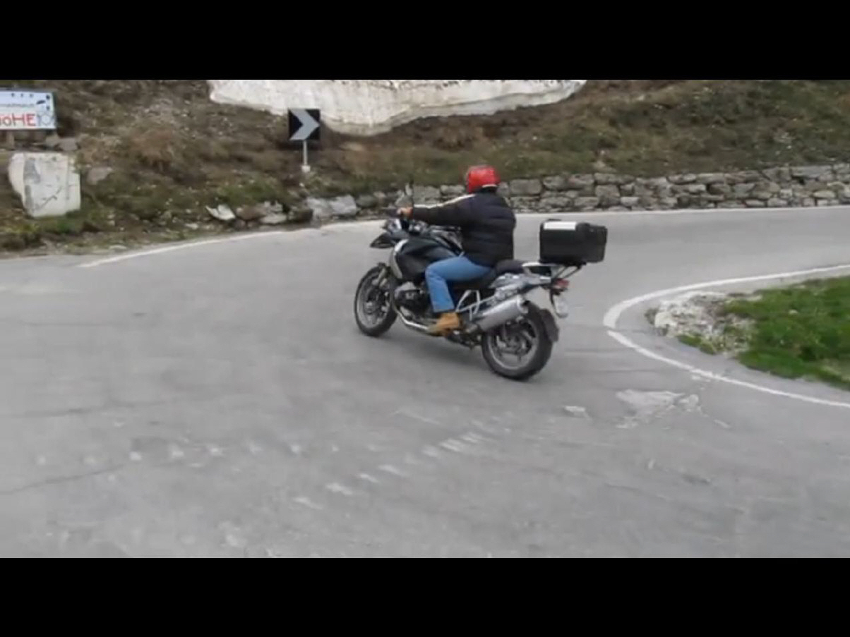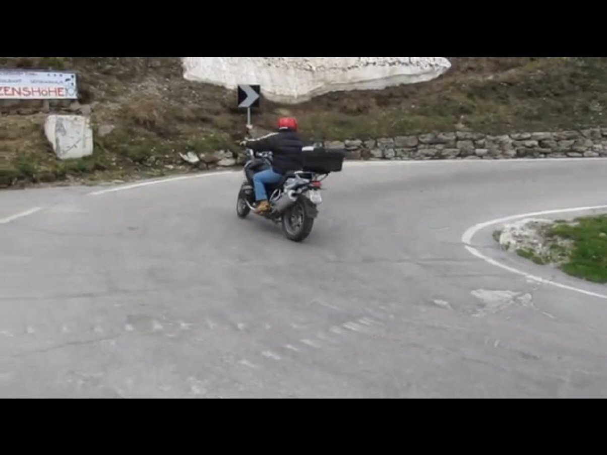 «Haarnadel-Kurven» oder «Spitzkehren» sind nicht leicht zu schaffen, wie das Beispiel zeigt: Der Fahrer dieser BMW R1200 GS (ein Schweizer, so wie ich es sehe mit 3-stelligem ZH-Schild!) schaut schon vor der Haarnadel hoch, ob Gegenverkehr herrscht - so weit, so gut. Im richtigen Moment (vielleicht hat's mit dem Tempo zu tun, da er bestimmt die Zuschauer wahrgenommen hat - Show-time?) aber verpasst er die Blickführung, die ihn UM die Kurve bringt. So fährt er in die Kurve und fixiert in der zweiten Hälfte das entgegenkommende Auto, was ihn unweigerlich auf dessen Fahrbahnseite bringt ...