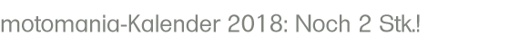 Der «motomania»-Kalender 2018 ist noch lieferbar: Wer einen haben möchte, bestellt ihn per E-mail urs.tobler (at) datacomm.ch oder per SMS an 079 333 23 77 (Anzahl und Absender nicht vergessen!) Klicke aufs Bild und Du kommst zu den einzelnen Monatsblättern!