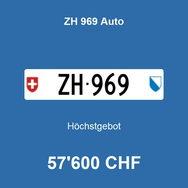 Autonummer ZH «969» ging für Fr. 57'600.- |