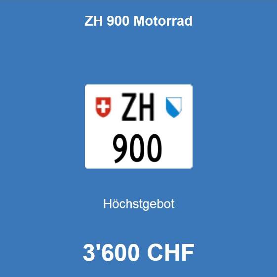 Am 19.2.2020 wurde im Kanton Zürich das 3-stellige TÖFF-Nummernschild ausgegeben - in der Auktion ging es für nur Fr. 3600.- weg: Ein Schnäppchenpreis! Verfolge den Verlauf vom «ZH 900