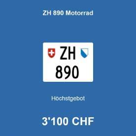 Am 10.7.2019 wurde im Kanton Zürich das neunte 3-stellige TÖFF-Nummernschild ausgegeben - in der Auktion dem Höchstbietenden: Verfolge den Verlauf «ZH 897