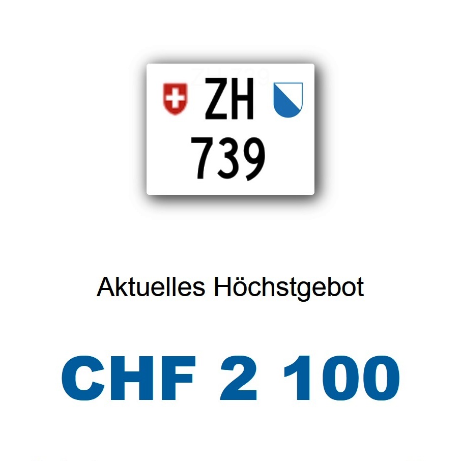 Am 29.5.2019 wurde im Kanton Zürich das sechste 3-stellige TÖFF-Nummernschild ausgegeben - in der Auktion dem Höchstbietenden: Verfolge den Verlauf «ZH 839