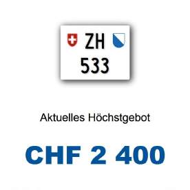 Am 12.02.2025 wurde im Kanton Zürich das nächste 3-stellige TÖFF-Nummernschild ausgegeben - in der Auktion ging es zum durchschnittlich guten Preis von Fr. 2400.- weg! Verfolge den Verlauf vom «ZH 533