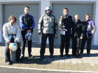 Kurz nach 11 Uhr trafen wir uns draussen zum Briefing: Nach kurzer Repetition der Gruppenfahrregeln teilten wir die Teilnehmenden in die drei Gruppen ein. Das Geschwindigkeitsniveau spielte auf den meisten Strassen keine Rolle, aber bergauf waren die 125er-Maschinen schon gegenüber den anderen benachteiligt. So übernahm Oliver wie immer freiwillig die langsameren, bei Arthur landeten die Fremdsprachigen und Cruiser und ich übernahm die restlichen. Nachdem Milly von jeder Gruppe ein Bild gemacht hatte, konnten wir etwa um 11.15 Uhr starten. |