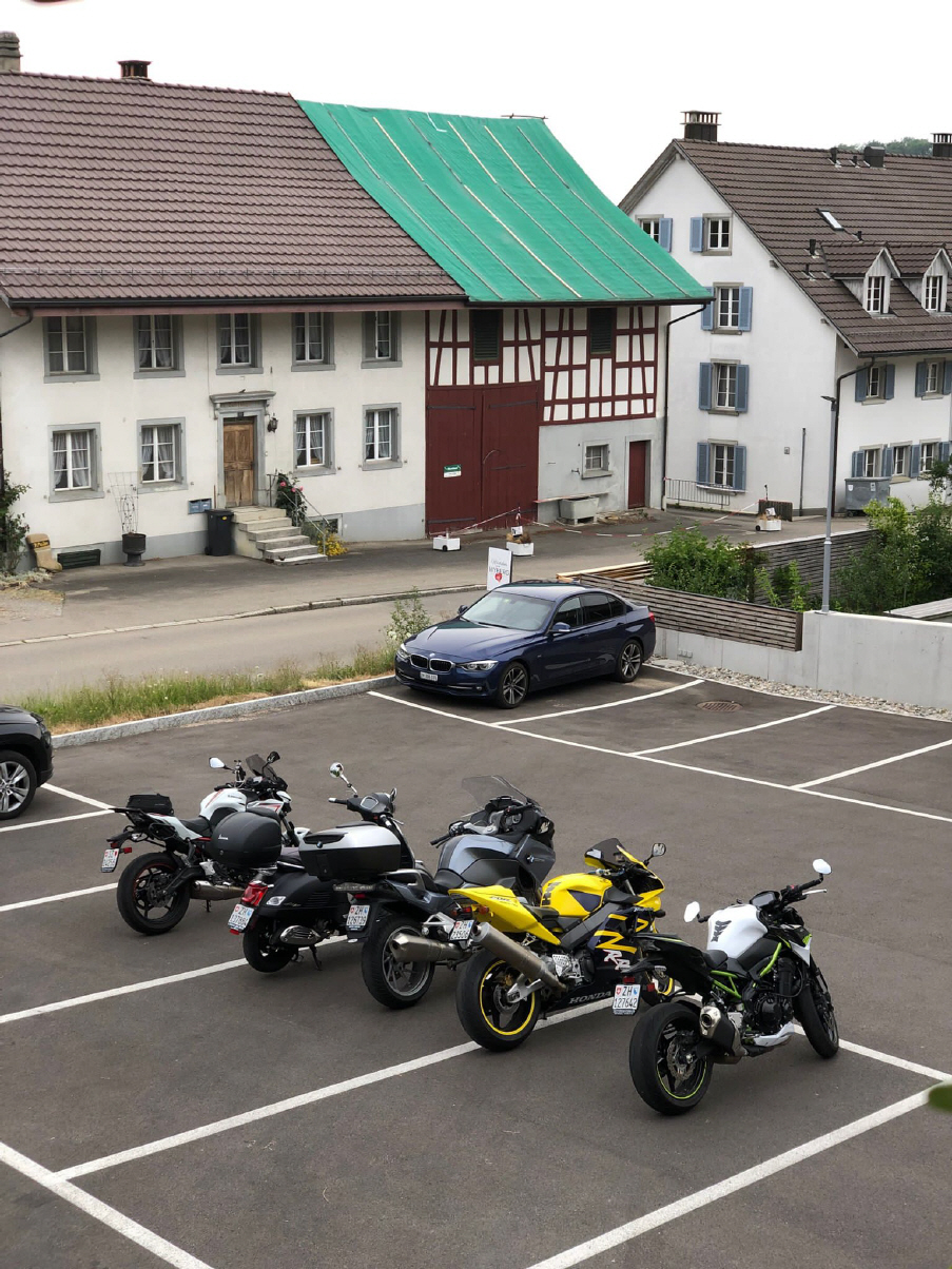 Gina berichtete im Chat der Gruppe über die erste Ausfahrt: «Was hatten wir gestern doch für schönes Wetter zum Fahren! Auf der ganzen Strecke blieb es trocken und es war nicht zu warm. Das abschliessende Essen im ("Rest.") Wyberg ("in Teufen") war fantastisch. Danke für die rundum gelungene Ausfahrt!»