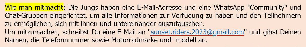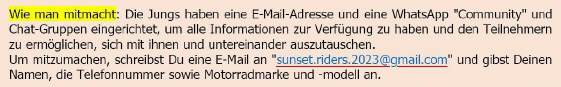 Ich wurde von Andrea H persönlich eingeladen, an dieser Ausfahrt mitzumachen. Da ich gleichzeitig ein Fahrlehrer-Event zu besuchen hatte, musste ich leider absagen.