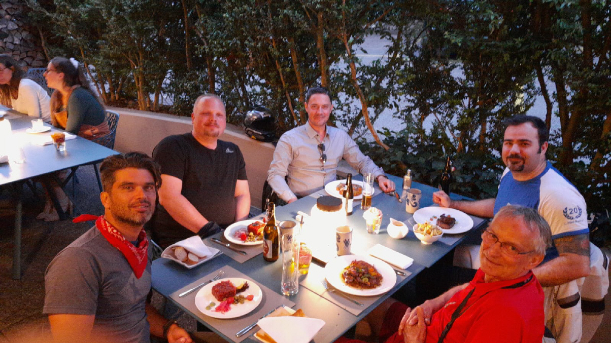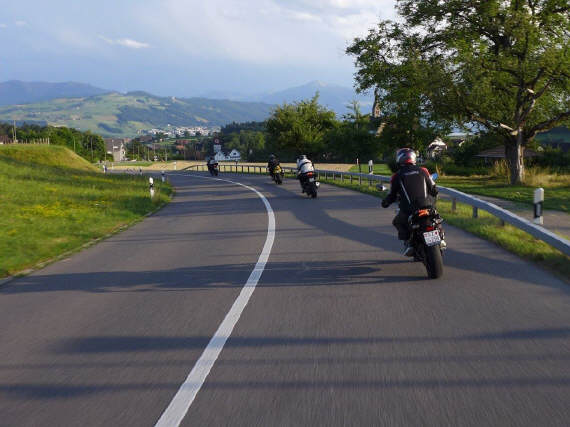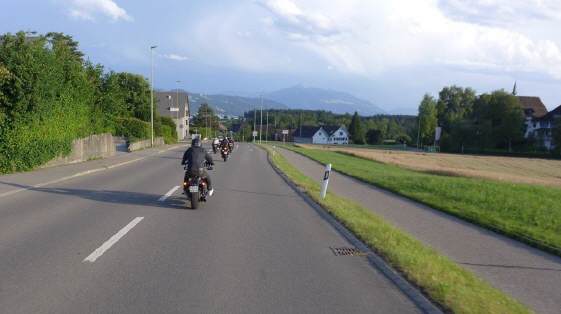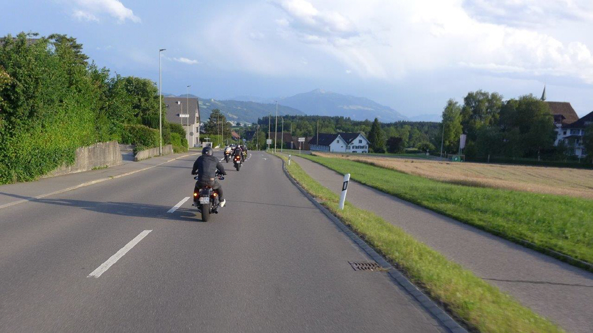 Die Gruppe setzte sich, mit Andrea an der Spitze, in Bewegung und ich reihte mich hinter Sergey ein, am Schluss fuhr Felipe mit seiner Harley, der in Sachen Kurventempo eine eigene Gruppe fährt ;-) Die Fahrt ging genau in der gegengesetzten Richtung, in der ich gekommen war: Von Schlieren nach Uitikon, dort Richtung Ringwil, Sellenbüren und Stallikon. Dort bogen wir vor der Baustelle rechts ab nach Bonstetten, dann aber wieder zurück ins Reppischtal, (wieder) die Buchenegg, dann den Albispass, wo wir eine Pause einlegten.