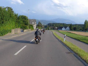 Nachdem ich am 29.Juni passen musste, konnte ich es am 6.Juli einrichten. Allerdings hatte ich mich komplett verhauen in dem Plan, wie schnell ich am Treffpunkt in Schlieren sein würde. Als ich von Uitikon her eintraf, gab es einen Stau, der sich keinen Meter bewegte. Für ein Mal warf ich alle guten Vorsätze, wie sich ein Töfffahrer zu verhalten hat, über den Haufen und schaute, wie es irgendwie vorwärts ging, mit einem Töff vom Kaliber einer GoldWing, plus zusätzlich meinem Einradanhänger hinten dran, ein recht heikles Unterfangen. Gegenüber den Autofahrern, die sich eine Viertelstunde und mehr gedulden mussten, verlor ich vielleicht nur 5 Minuten - in Anbetracht aber, dass ich nicht wirklich wusste, wo der Sammelplatz war, trotzdem eine Katastrophe. Da mich meine 350er-Yamaha im Stich gelassen hatte und ich auf die GoldWing umsatteln musste, war ich eh fast eine halbe Stunde verspätet. Ich hatte mich mit Yannis verabredet, mit ihm ab Altstätten zu fahren, was aber eben ins Wasser fiel. So irrte ich im Industriegebiet südlich der Bahnlinie herum, drehte offenbar eine Runde, da wo die anderen warteten, aber ohne sie zu sehen. Bei meiner Weiterfahrt - eigentlich hatte ich das Vorhaben bereits abgeschrieben - läutete das Handy und Andrea war dran: Er lotste mich zurück und ohne Startbild machten wir uns mindestens 20 Minuten verspätet zu sechst auf den Weg. |