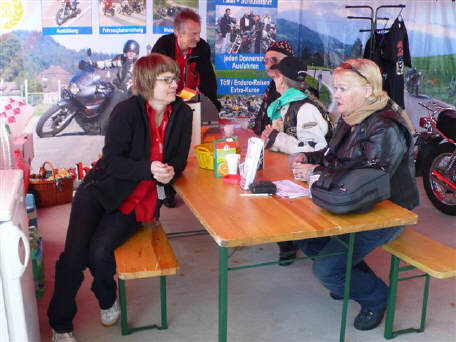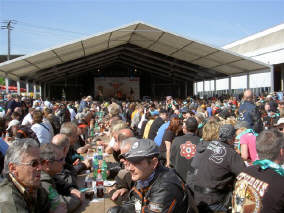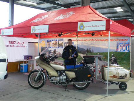Die Aussteller haben ihren Stand in einer grossen gedeckten Halle. Direkt vor der Halle befindet sich die Bike-Show. Diesmal hatte ich meinen Stand ganz am Anfang Ausstellung in der BOX 1, weil ein Stammkunde ausgefallen ist. In diesem Jahr konnte ich feststellen, dass einige der regelmässigen Aussteller nicht (mehr) mit dabei waren. So war ein grosser Teil der Halle unbe- setzt und wir machten einen Vorschlag, den Besucherstrom in einem anderen Jahr bewusster durch die Ausstellung zu lenken. |