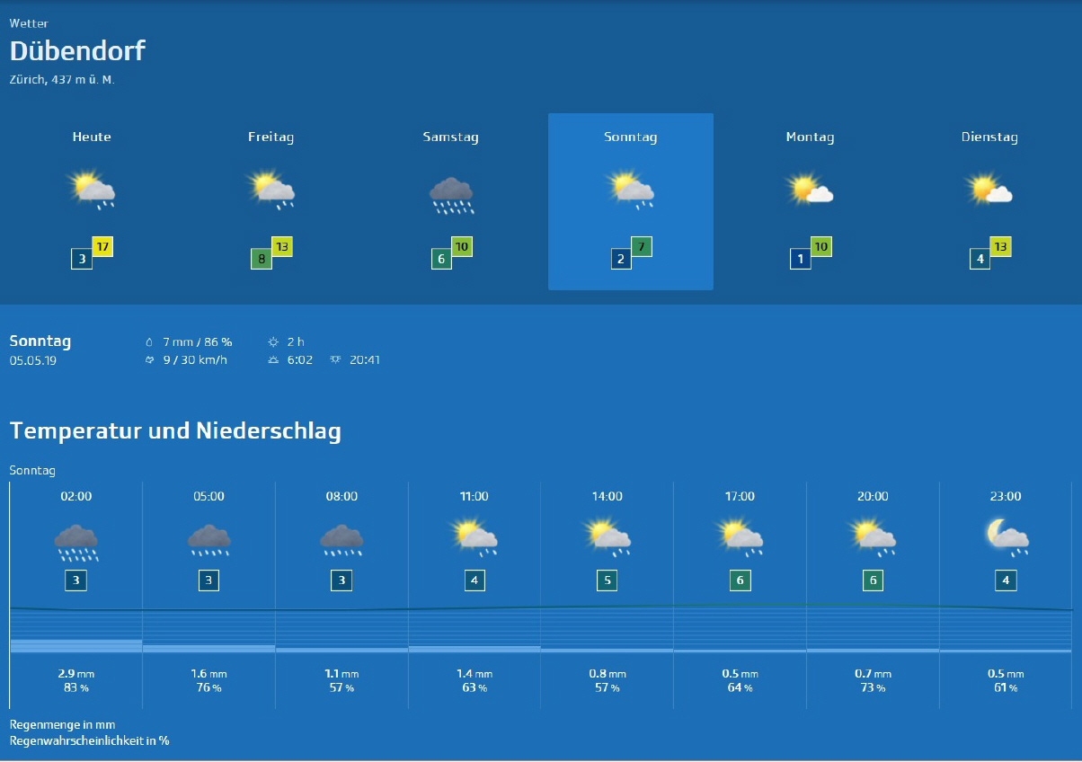Prognose Radio DRS Meteo Schweiz für Dübendorf |