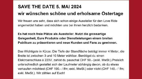 Sonntag, 6.Mai LOVE RIDE in Dübendorf |