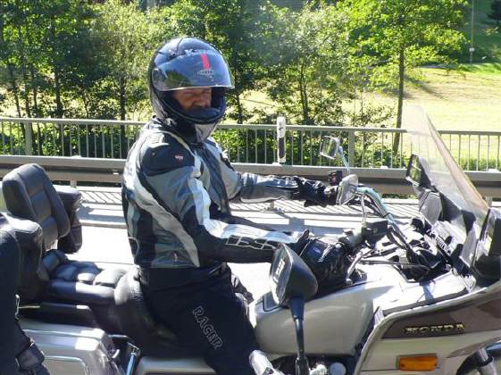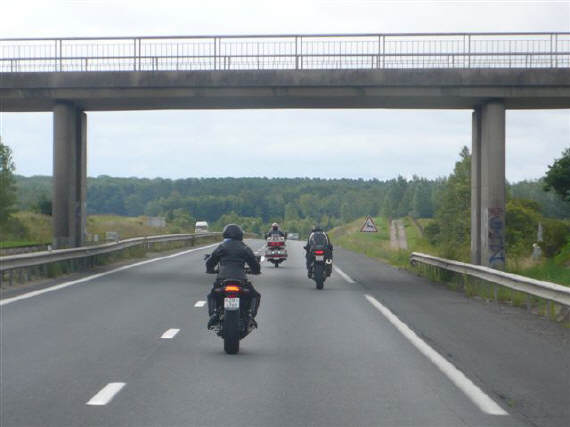 In Frankreich angekommen, erlebten wir eine EXTREM gefährliche Situation, die mir noch jetzt die Haare im Nacken aufstellt: In einer engen Ortsdurchfahrt stand ein Auto auf der Gegenfahrbahn, dessen Fahrer mit einer uns abgewandten Person sprach. Da diese Person den Rücken uns zudrehte, konnte sie uns nicht erkennen. Kurz bevor ich die Engstelle befuhr, drehte sich der Mann vom Fahrer weg und drohte, direkt vor meine GoldWing zu laufen. Durch das kreischende Vorderrad, welches ich bei meiner eingelegten Vollbremsung, produzierte, hielt er in seiner Bewegung einen Moment inne, liess mich passieren, Sigrid schlüpfte auch durch und beinahe wäre er dem Dritten in der Gruppe, Dölf vor die Maschine gelaufen, wenn dieser nicht schon lange gebremst hätte! Das war noch einmal - ABER SEHR KNAPP - gut gegangen... In solchen Fällen hupe ich normalerweise immer schon im voraus, doch diesmal hatte ich es dummerweise unterlassen! Man merke sich: Lieber einmal mehr hupen als ein Mal zuwenig, es könnte so schnell ins Auge gehen - nicht auszumachen, was passiert wäre, wenn er wirklich in meine GoldWing gelaufen wäre... |