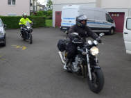Als ich pünktlich um 10 Uhr mit dem Bus in den Hof fuhr, war Efecan schon bereit. Doch, oh Schreck, oh Graus - was für Schuhe, mit Schuhbändeln auf die Rennstrecke?!? Ich hatte ihn informiert, dass es Lederbekleidung braucht auf der Rennstrecke. Eine gute Textilkleidung wäre beim ersten Mal vielleicht noch toleriert worden, aber nicht Kevlarjeans! So hatte er sich bei Louis in Wallisellen umgeschaut und ein richtiges Lederkombi gepostet. Aber auf die Stiefel wurde er nicht aufmerksam gemacht ... gute Beratung, aber nicht bis zum Ende geführt! |