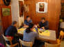 Nun zog es den einen oder anderen wieder eher in Richtung nach Hause, aber es war doch eine unerwartet grosse Gruppe, welche uns dann doch noch zum verspäteten Mittagessen begleiteten. Unser Fahrt ging dem Sihlsee entlang nach Oberägeri und von dort über die Ibergeregg. Auf der ganzen Fahrt goss es in Strömen, wir holten Milly, die sofort mit dem Auto losgefahren war, nach der Ibergeregg ein und sie liess den ganzen Tross überholen. Dann kam eine Baustelle mit Schotter vom Gröbsten, der Bremskurs lässt grüssen, und gleich danach unser Fahrziel, das Restaurant Windstock oberhalb von Rickenbach SZ. Wir hatten uns vorangekündigt, und die Wirtin schickte uns gleich in den Trockenraum, um unsere nassen Kleider aufzuhängen.