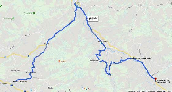 Wir hatten um 8 Uhr mit Thomas, meinem Fahrschüler, der in der näheren Nachbarschaft wohnt, die Abfahrt vereinbart. Ziel war es, möglichst wenig auf der Autobahn zu fahren. Wir nahmen Haupt- und Nebenstrassen und gingen in Pfäffikon SZ auf die Autobahn und in Lachen schon wieder runter. Kurz vor 9 Uhr trafen wir am Ziel ein.