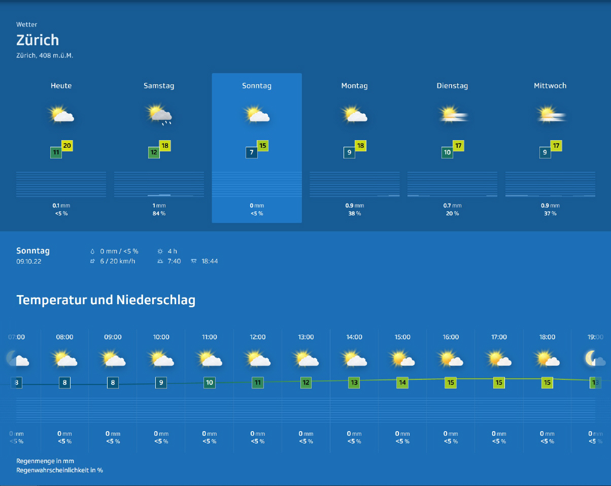 srf-Meteo Prognose für Apéro und Endziel: Rest. |