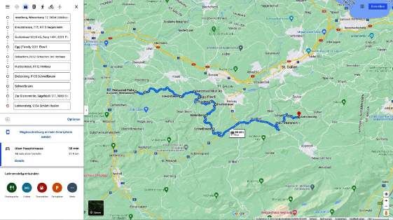 (Für grösseres Bild klicke auf obiges Bild) Start Winzenberg, da Strecke nach Magdenau geschlossen, alternativ «Herzroute» nach Wolfertswil, Alterschwil, Egg, Kantonsgrenze, Schachen (b. Herisau), Hueb, Dietenberg, Rötschwil, Schwellbrunn, Hundwil, Haslen nach Leimensteig (Die Strecke kann von Gruppe zu Gruppe abweichen)