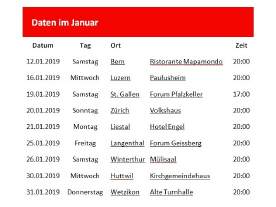 Termine, Standorte und Zeiten |
