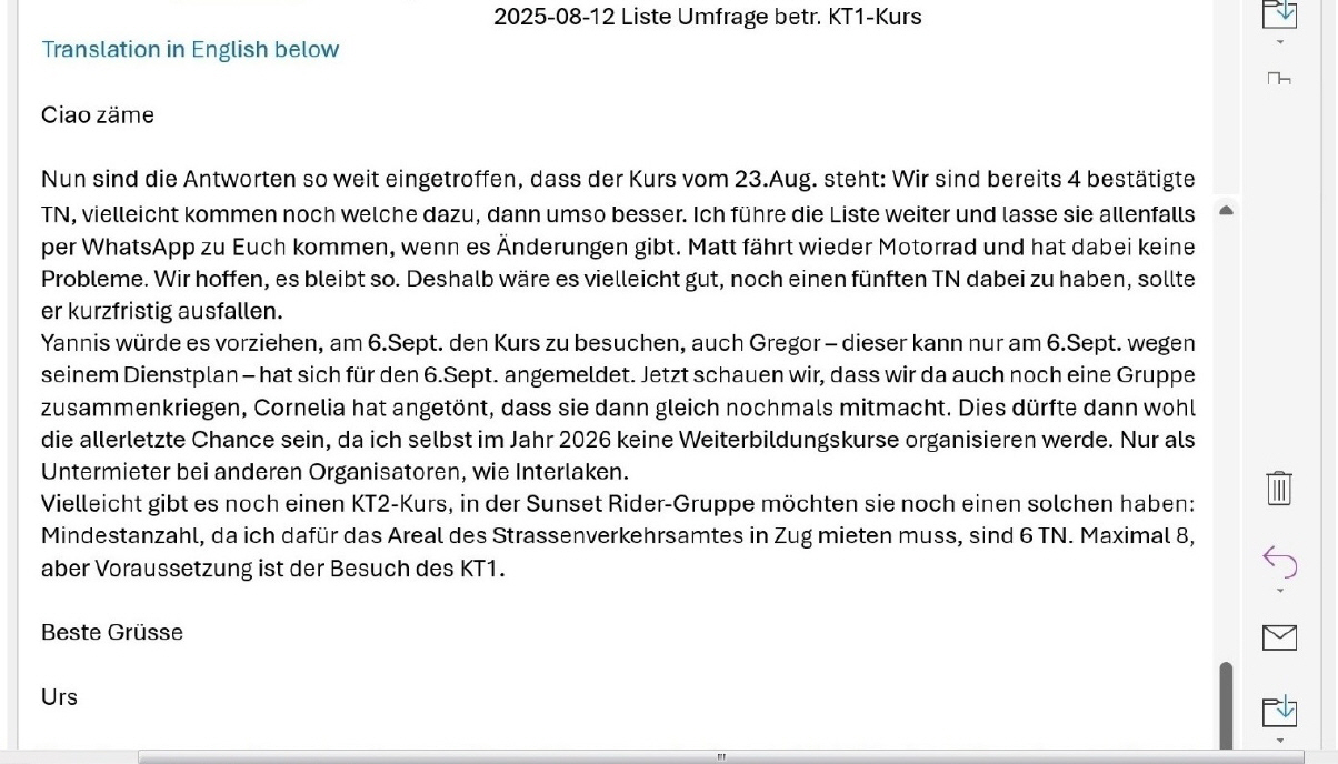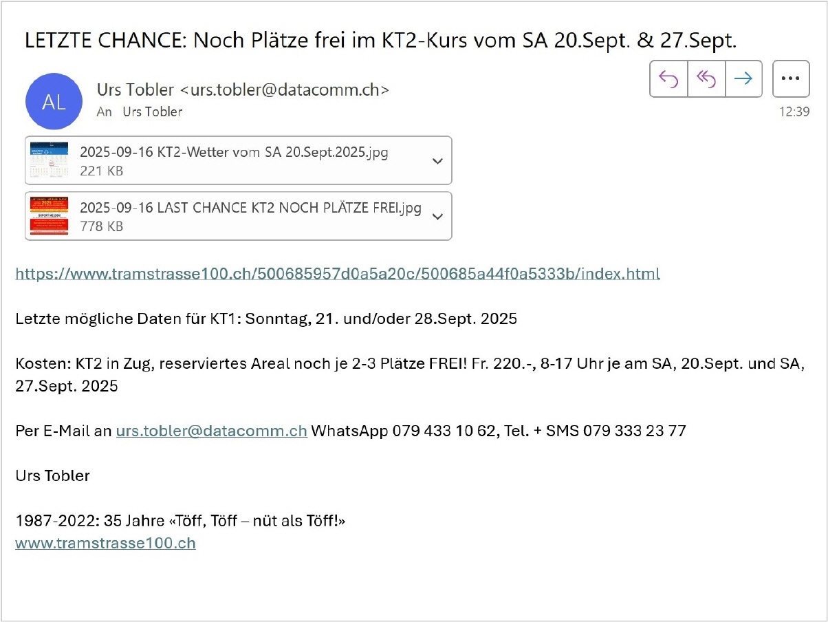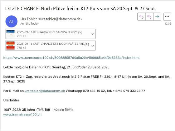 E-Mail vom 12.Aug. 2025 wegen weiteren KT-Kursen |